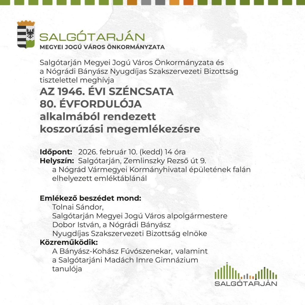 Megemlékezés a Széncsata 80. évfordulóján – 2026.02.10.