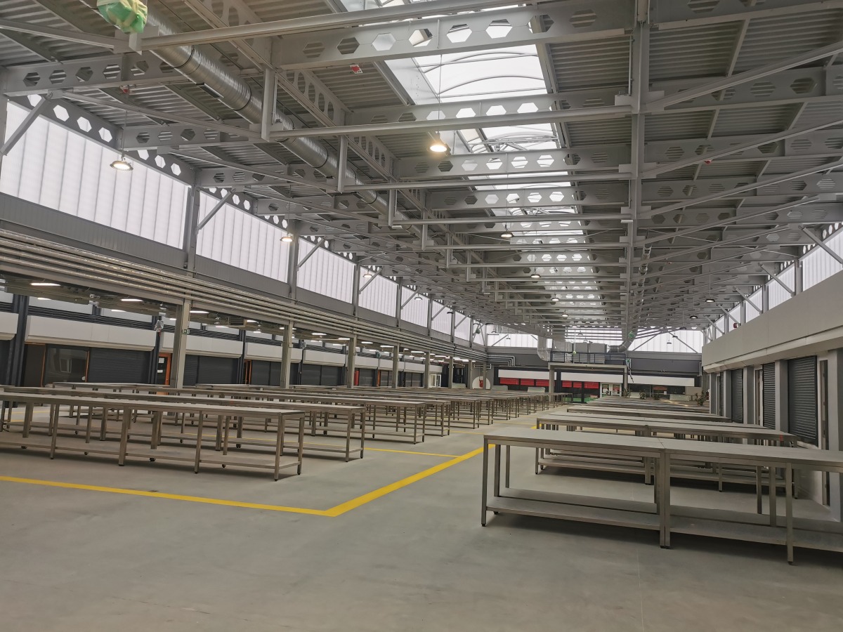 Kezdetben a csarnok 53 üzlethelyiségnek adott otthon, majd további üzlethelyiségekkel és pavilonsorral bővült. A vonat, a helyi és távolsági buszok itt rakták le utasaikat és innen indulhattak haza a lakók munkájuk és vásárlásuk végeztével. A vásárcsarnok épülete a mai modern kor követelményeinek nem felelt meg. Hőtechnikai jellemzői rosszak voltak, az épület falazat váza nélkülözték a szigetelést, üvegezése egy rétegű, hőátbocsátási tényezője jelentős volt. A tető acél szerkezete korrodált. A tető tartószerkezete javításra, megerősítésre került, a héjazat cseréje megvalósult. Ennek köszönhetően már jelentős energia megtakarítás következhet be az üzemeltetés során, amit tovább erősít a nyílászárók teljes cseréje. A falazat tartószerkezete szigetelése további megtakarításokat eredményez. A vásárcsarnok és az ahhoz kapcsolódó zöldfelület fejlesztése lehetőség biztosít arra, hogy a város és a térség valamennyi lakosa közvetlen kapcsolatba kerüljön egymással. A fejlesztés hatására a jelenlegi vásárcsarnok szolgáltatásait lényegesen magasabb színvonalon fogja nyújtani a város és környéke lakosságának. A felújított épületbe új bérlők is várhatók, mellyel a kereskedelmi paletta is szélesedni fog.